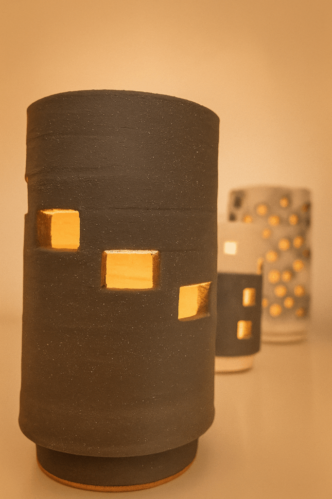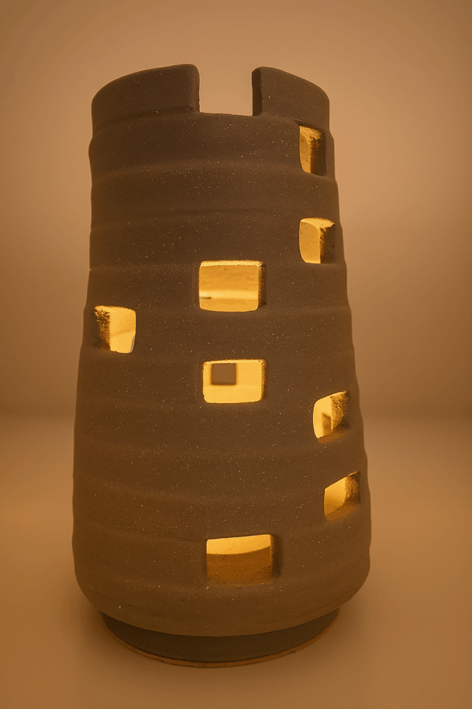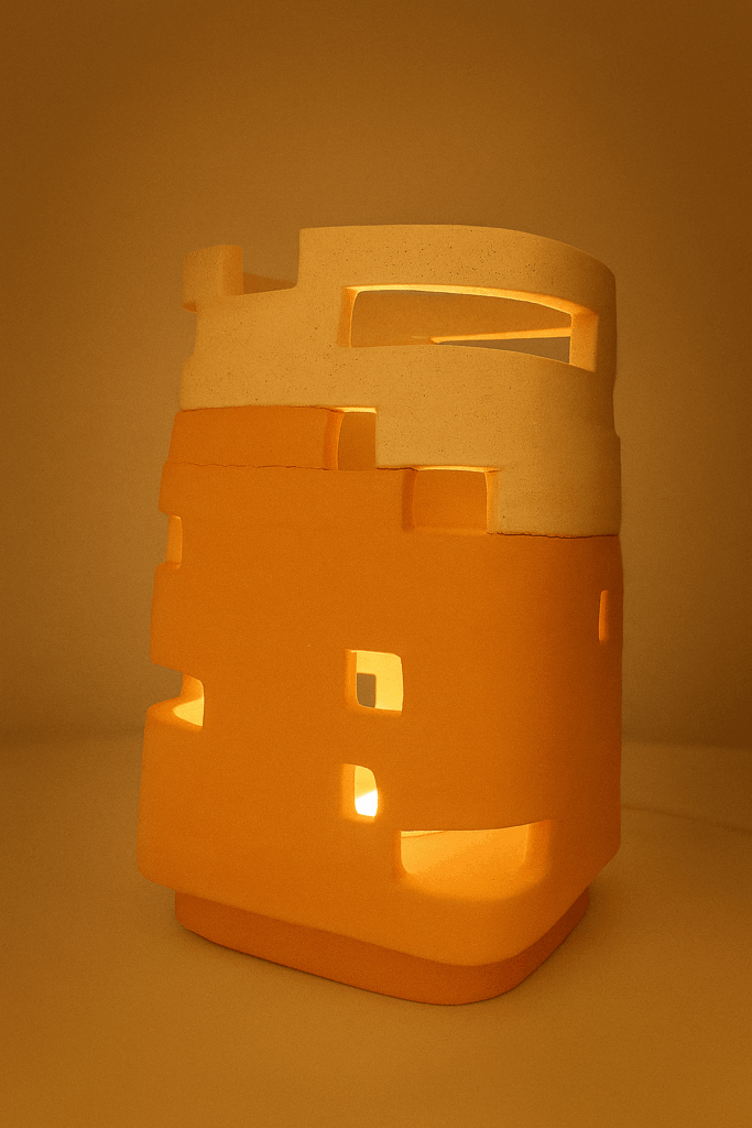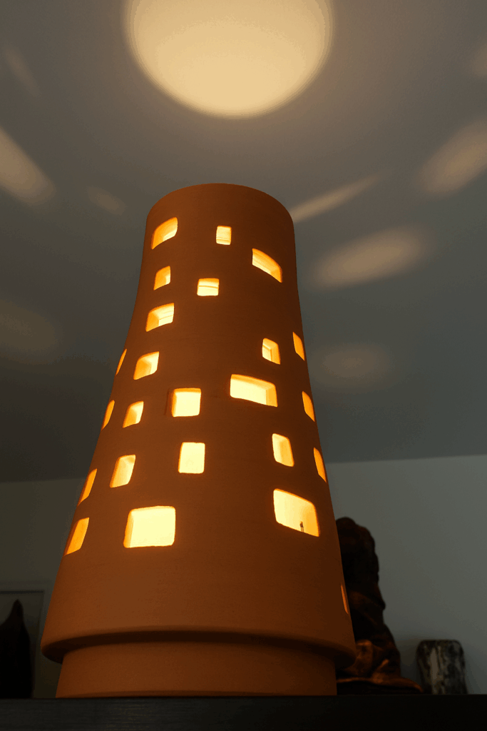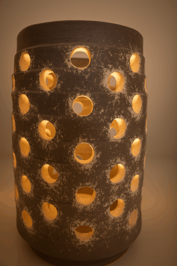 Mes créations sont des architectures d’âme où la lumière trouve refuge. Je modèle l’argile comme on façonne un souffle : dans une lenteur délibérée, en laissant la matière dicter son langage. Chaque pièce naît du dialogue entre la force primitive de la terre et la douceur lumineuse qui l’habite. Rien n’est caché : les traces du geste, les irrégularités assumées, les perforations racontent la main qui les a guidées et confèrent à chaque œuvre son irréductible singularité.
