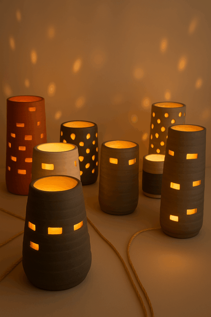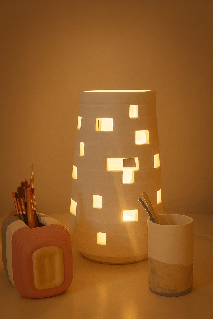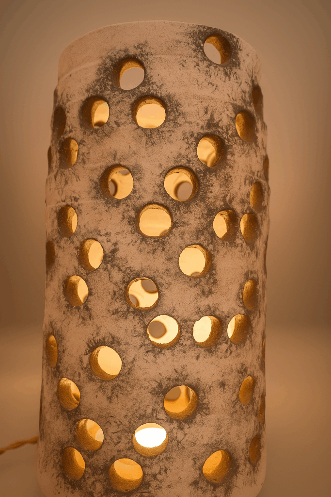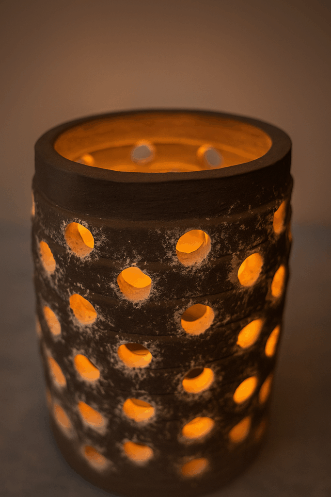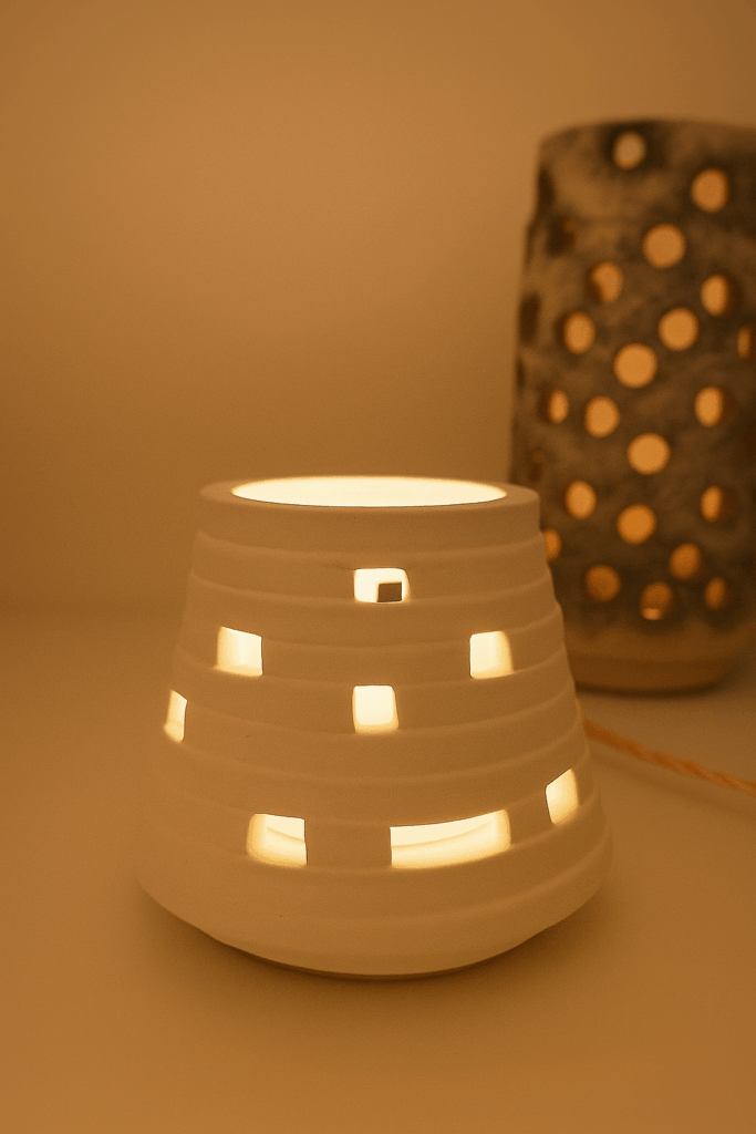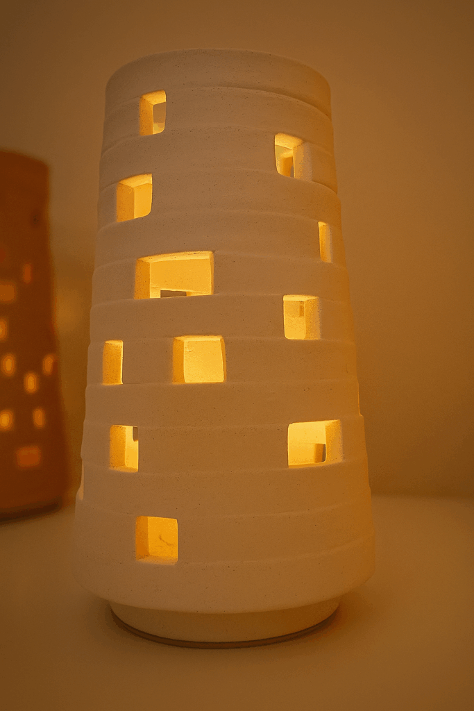 Mes créations sont des architectures d’âme où la lumière trouve refuge. Je modèle l’argile comme on façonne un souffle : dans une lenteur délibérée, en laissant la matière dicter son langage. Chaque pièce naît du dialogue entre la force primitive de la terre et la douceur lumineuse qui l’habite. Rien n’est caché : les traces du geste, les irrégularités assumées, les perforations racontent la main qui les a guidées et confèrent à chaque œuvre son irréductible singularité.