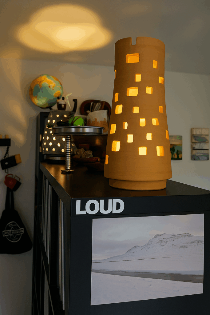 Je pense mes lampes comme des sculptures vivantes. À travers leurs ouvertures, la lumière circule, glisse, s’échappe. Elles ne se contentent pas d’éclairer : elles sculptent l’ambiance, enveloppent l’espace et l’invitent à respirer autrement.